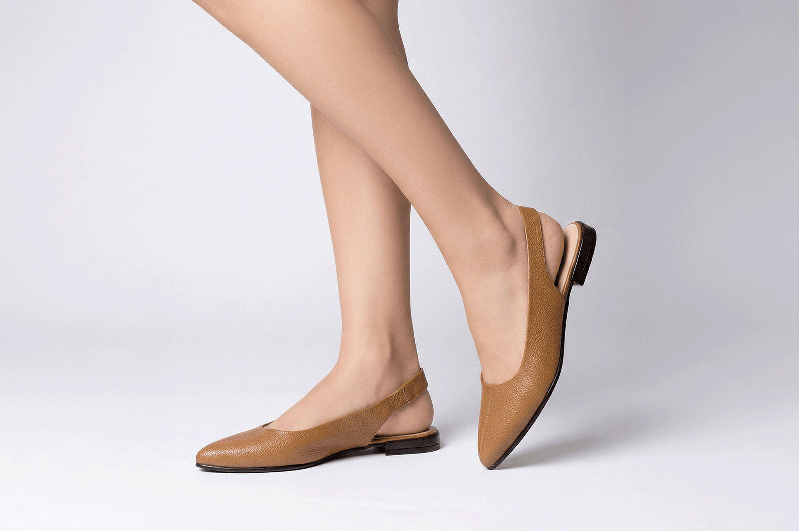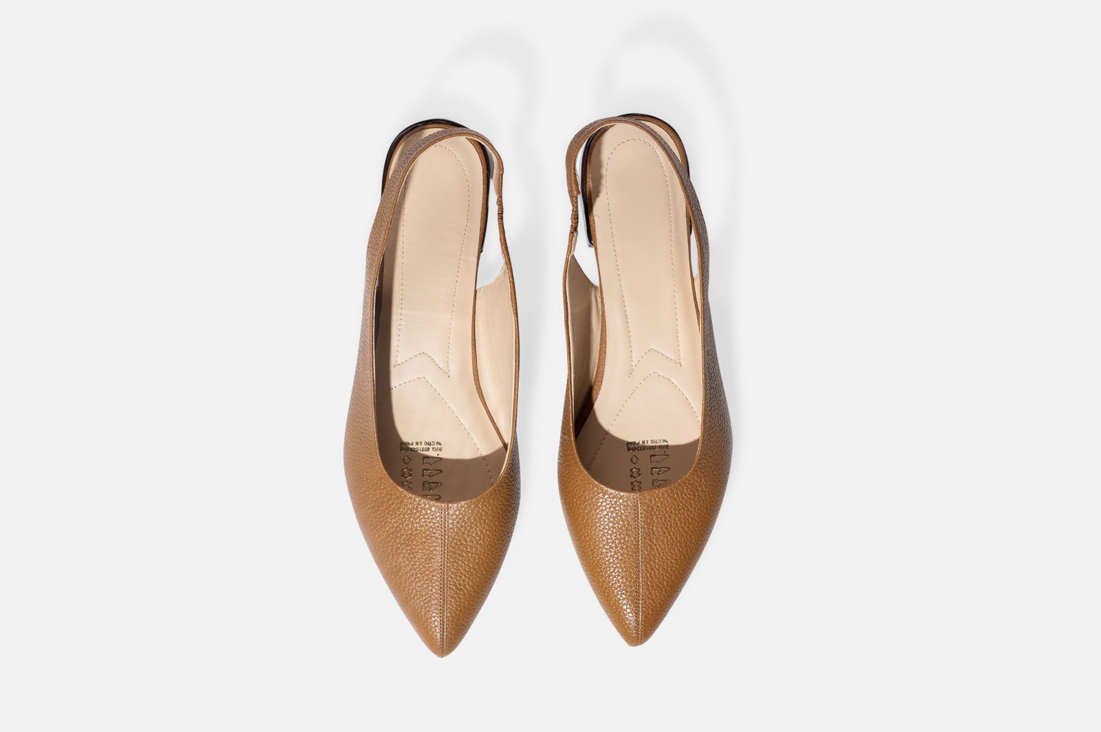 Balerina de mujer hecho en cuero de color natural versión en punta.