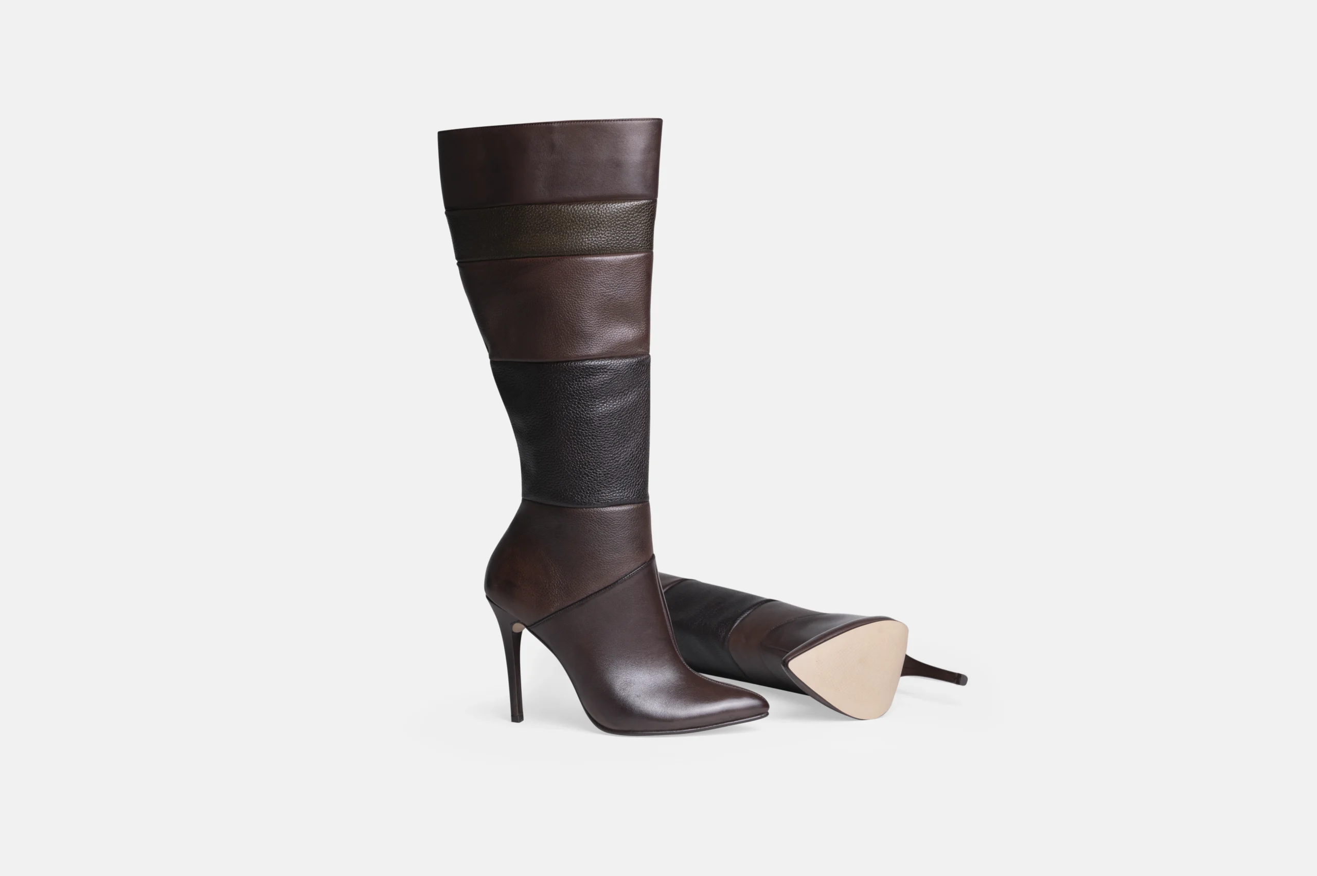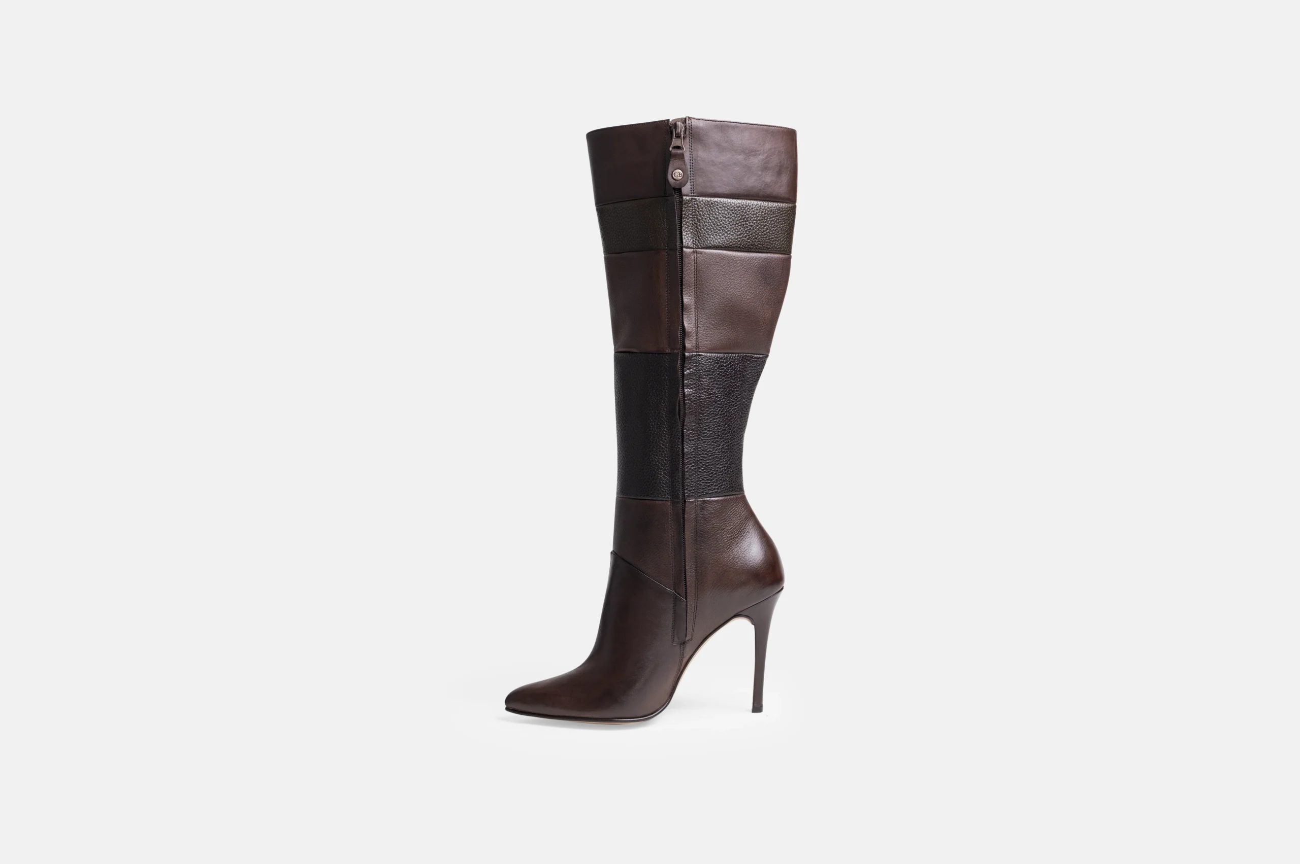 Mis Botas largas modelo BL6 en color negro en combinación de varias telas y tonos de cuero genuino artesanal. Diseñada y confeccionada en nuestra fábrica con la última tecnología disponible. Por ello, garantizamos un control total de calidad y me permite brindarte garantía de cambio.