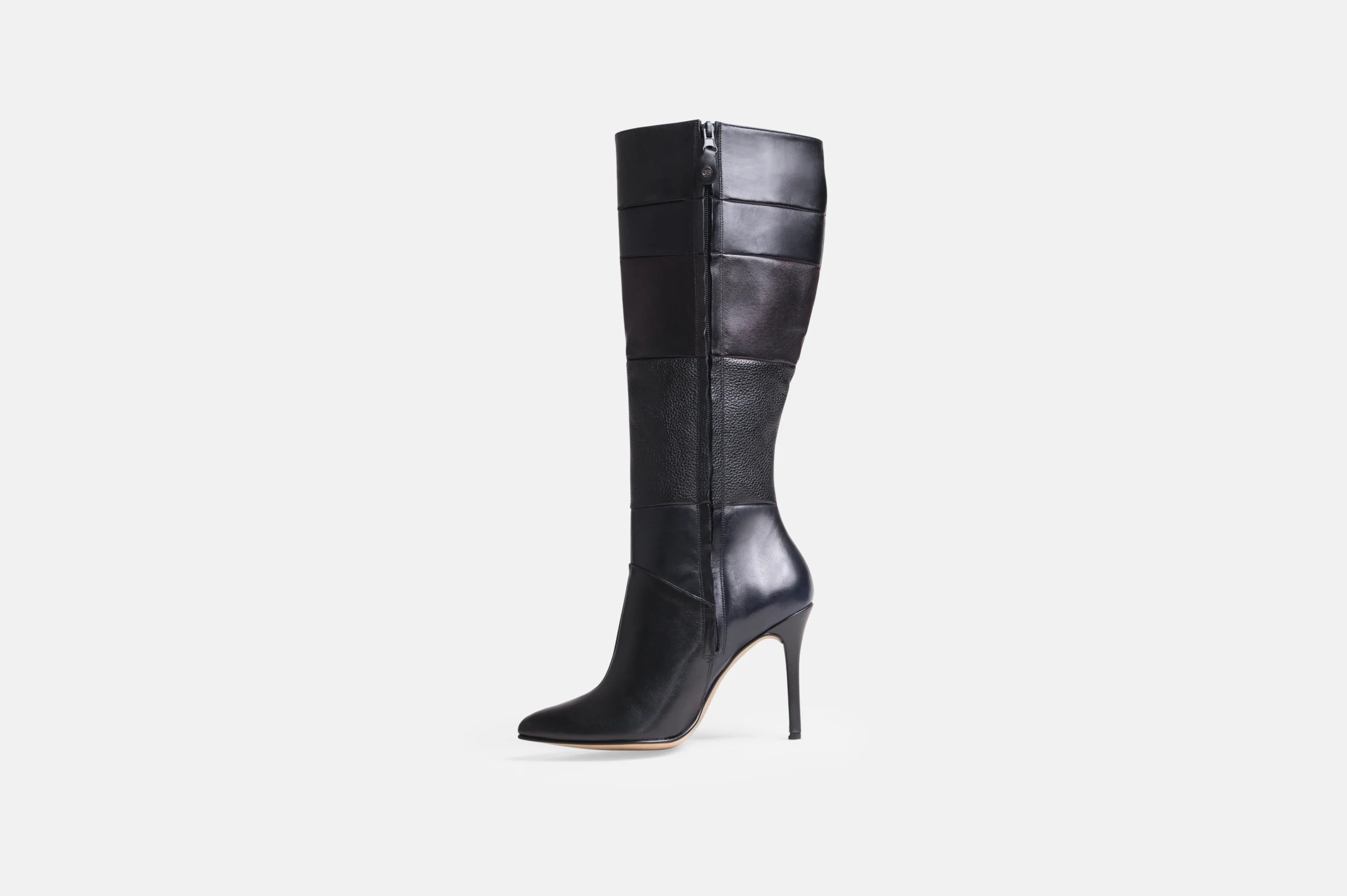 Mi Bota larga modelo BL6 en color negro en combinación de varios cueros y tonos de cuero genuino artesanal. Diseñada y confeccionada en nuestra fábrica con la última tecnología disponible. Por ello garantizamos un control total de calidad y me permite brindarte garantía de cambio.