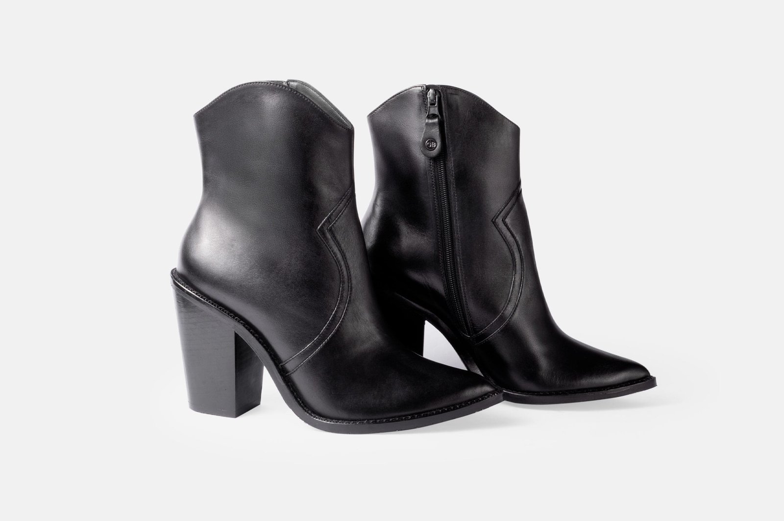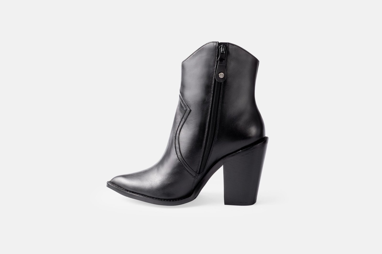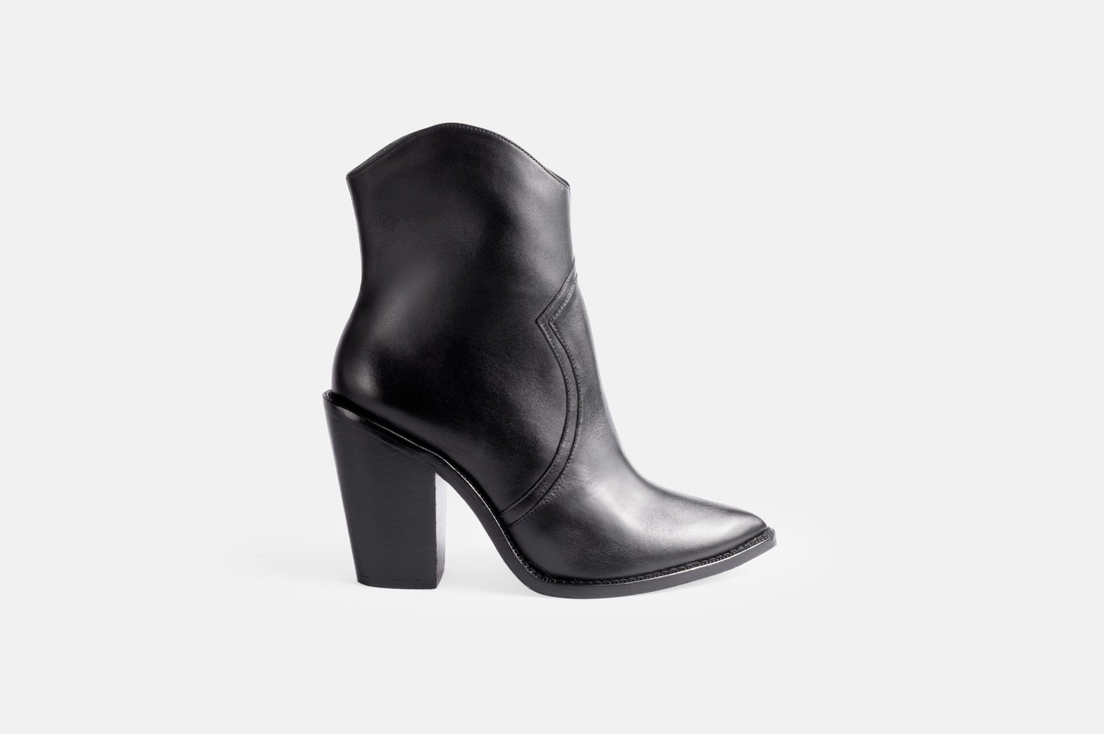 Botin negro para mujer con taco 10, hecho con detalles distintivos en el cuero napa.