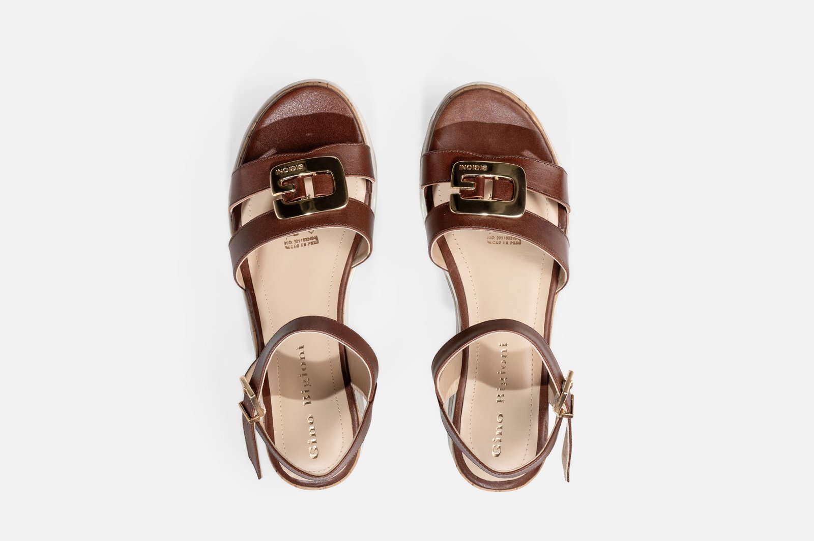 andalias casuales de mujer fabricadas en cuero napa premium color Apache. Posee un diseño de doble correa con hebilla metálica en forma de G, ajuste de pulsera al tobillo y plataforma de 5 cm con acabado bitono. Calzado de alta resistencia y confort superior.