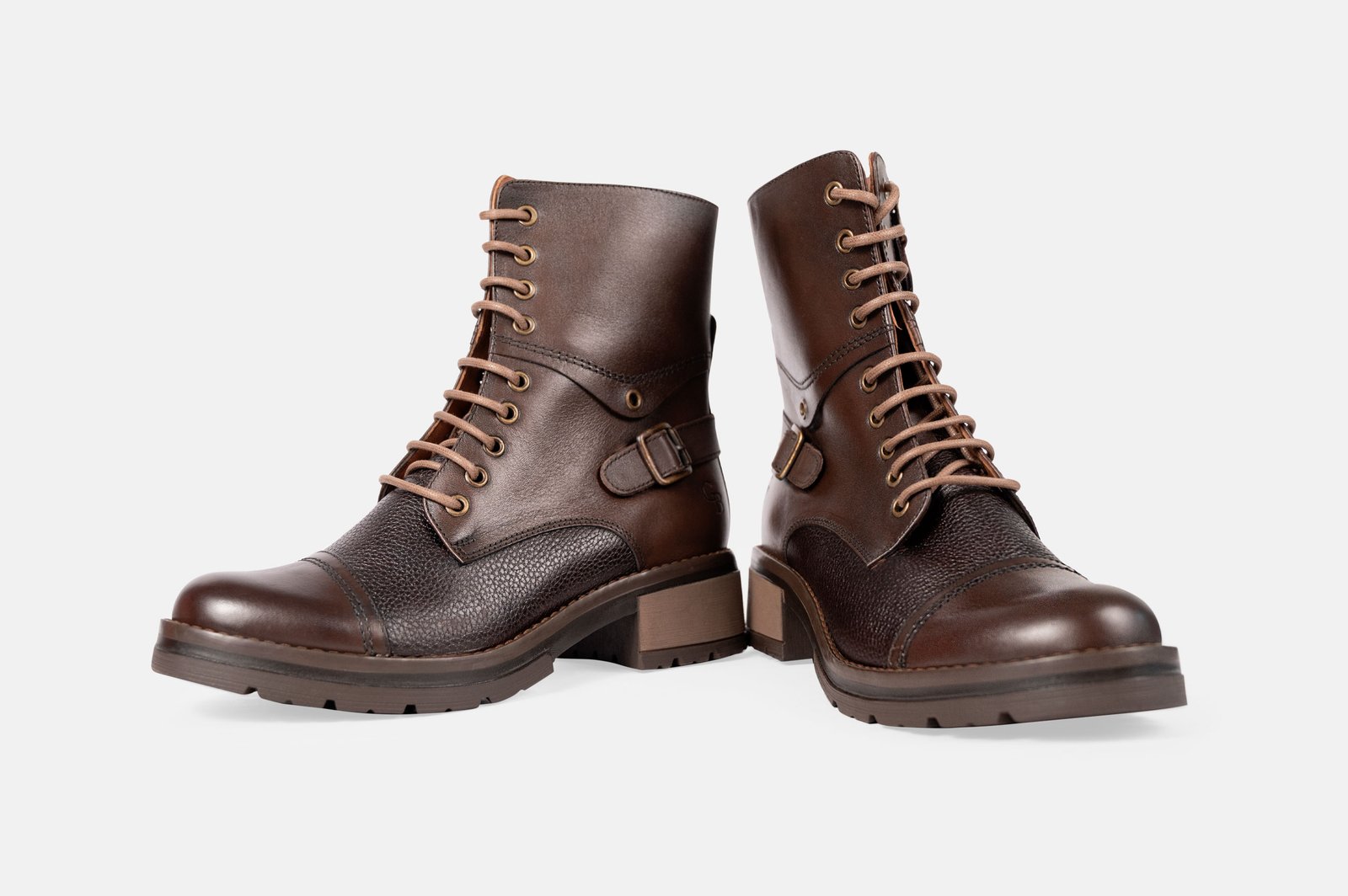 Botines de mujer modelo Genova en cuero napa legítimo. Tono africano con forro interior y plantilla en cuero badana para máximo confort térmico. Altura de 4 cm con suela antideslizante y ajuste de cordones reforzado, garantizando durabilidad y elegancia artesanal.