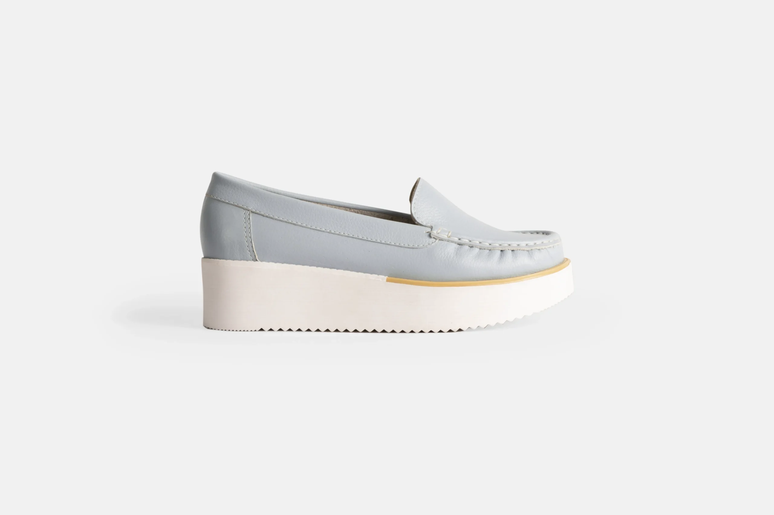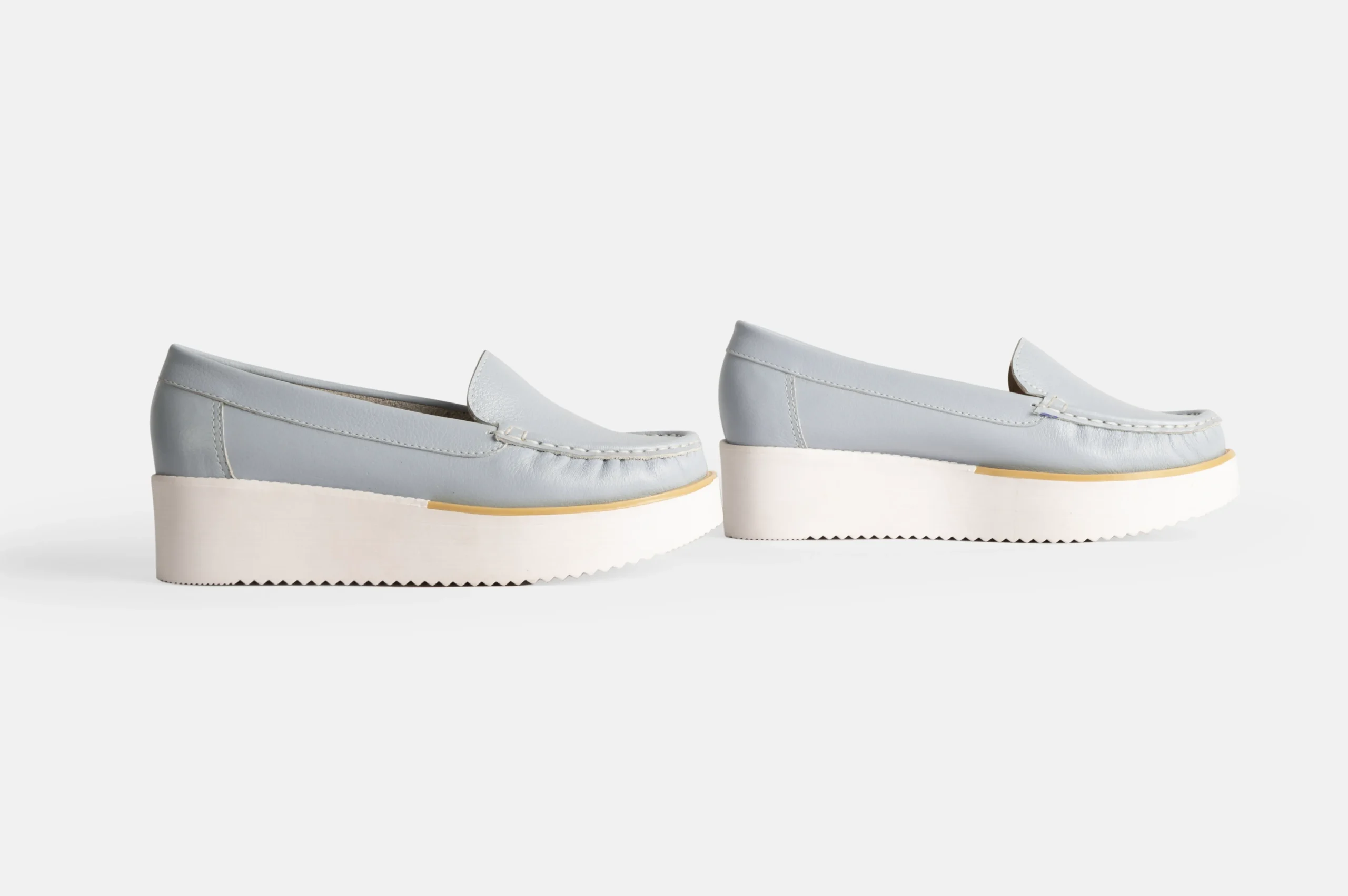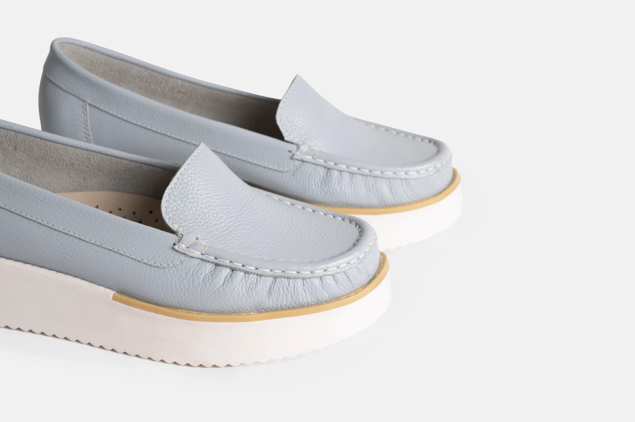 Mocasin para mujer color celeste hechos en cuero genuino.