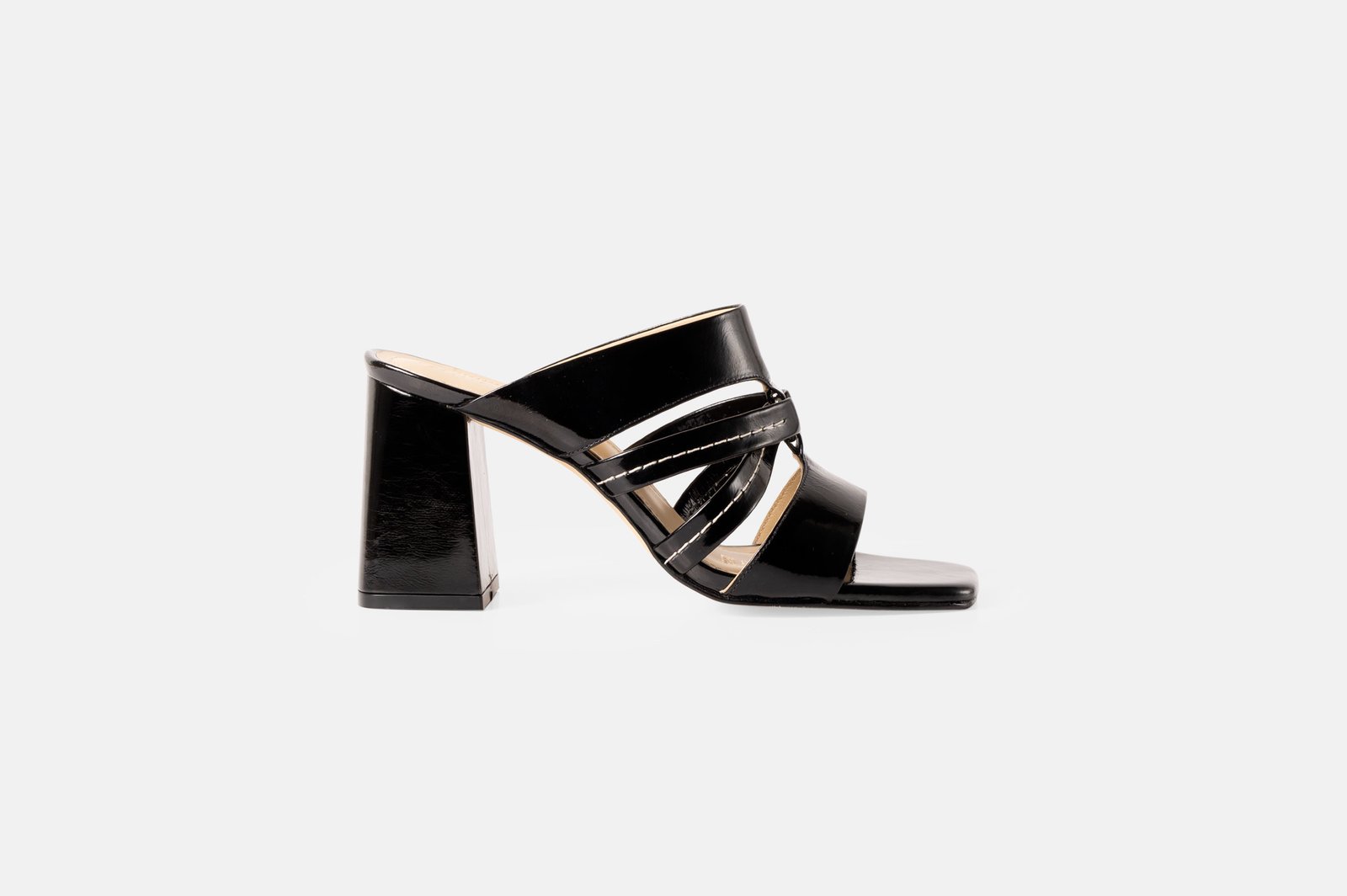Sandalias para mujer de color negro en cuero genuino, hechas en nuestra fábrica con la mejor tecnología disponible, lo que garantiza un control total de calidad.