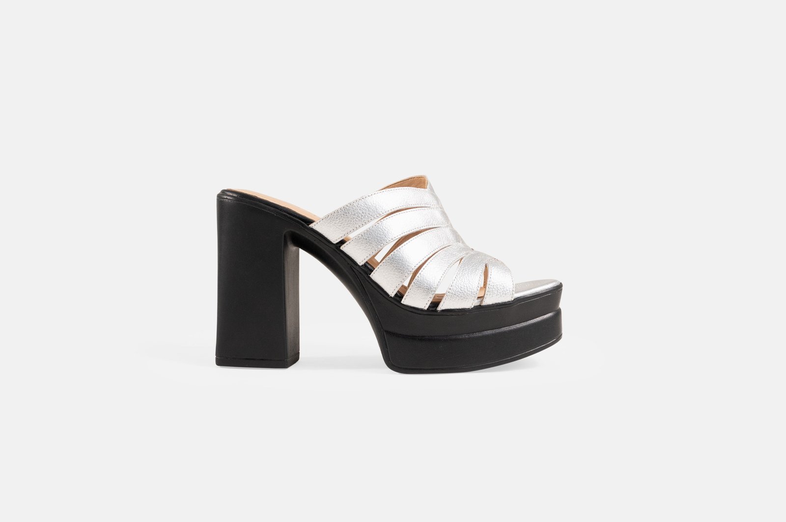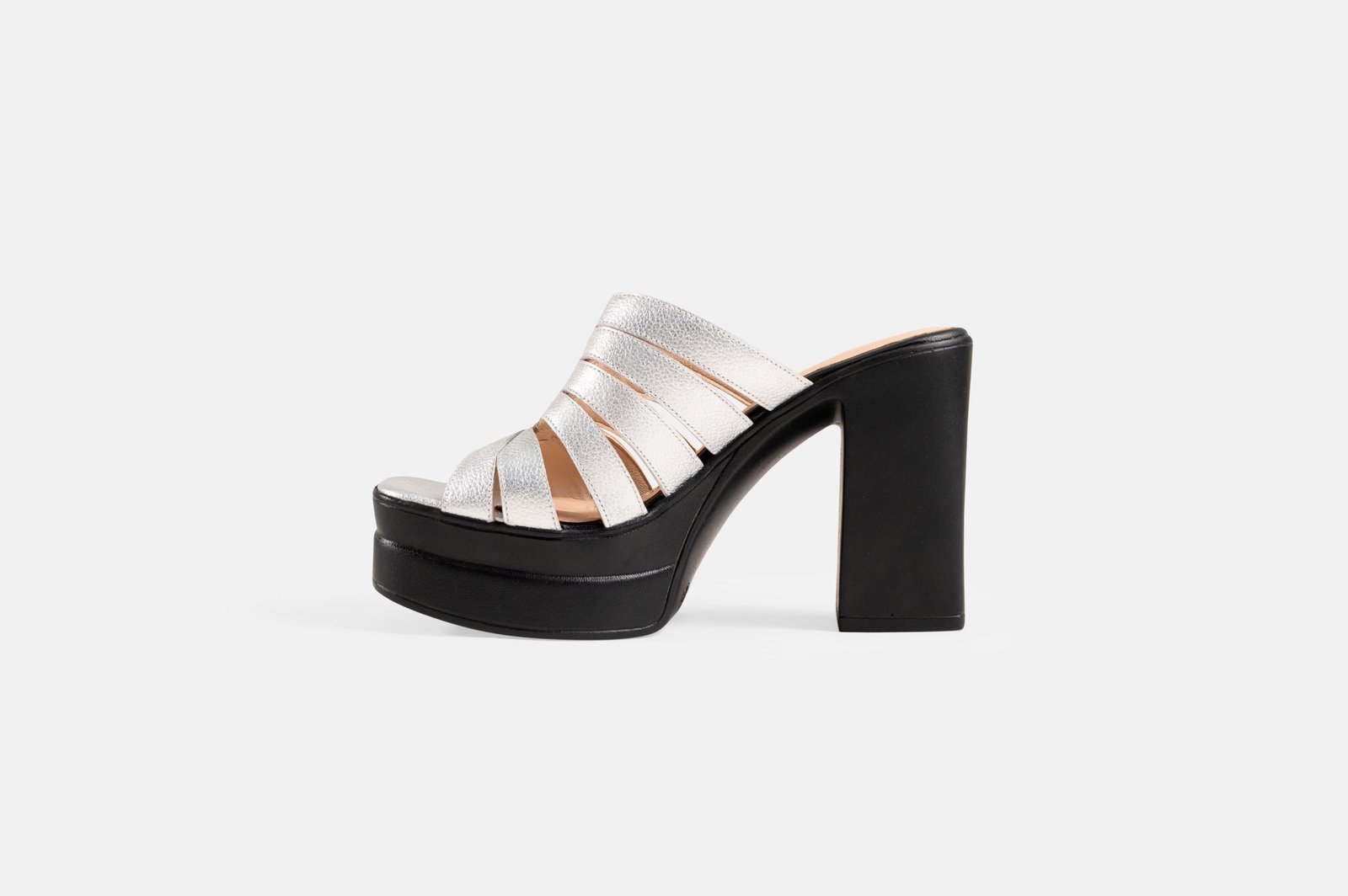 Sandalia de vestir de taco y plataforma hecho en cuero color platinado. Este diseño esta enfocado en la mujer moderna que busca destacar en su evento reunion importante, un diseño que piensa en tu comodidad y estilo que necesitas.
