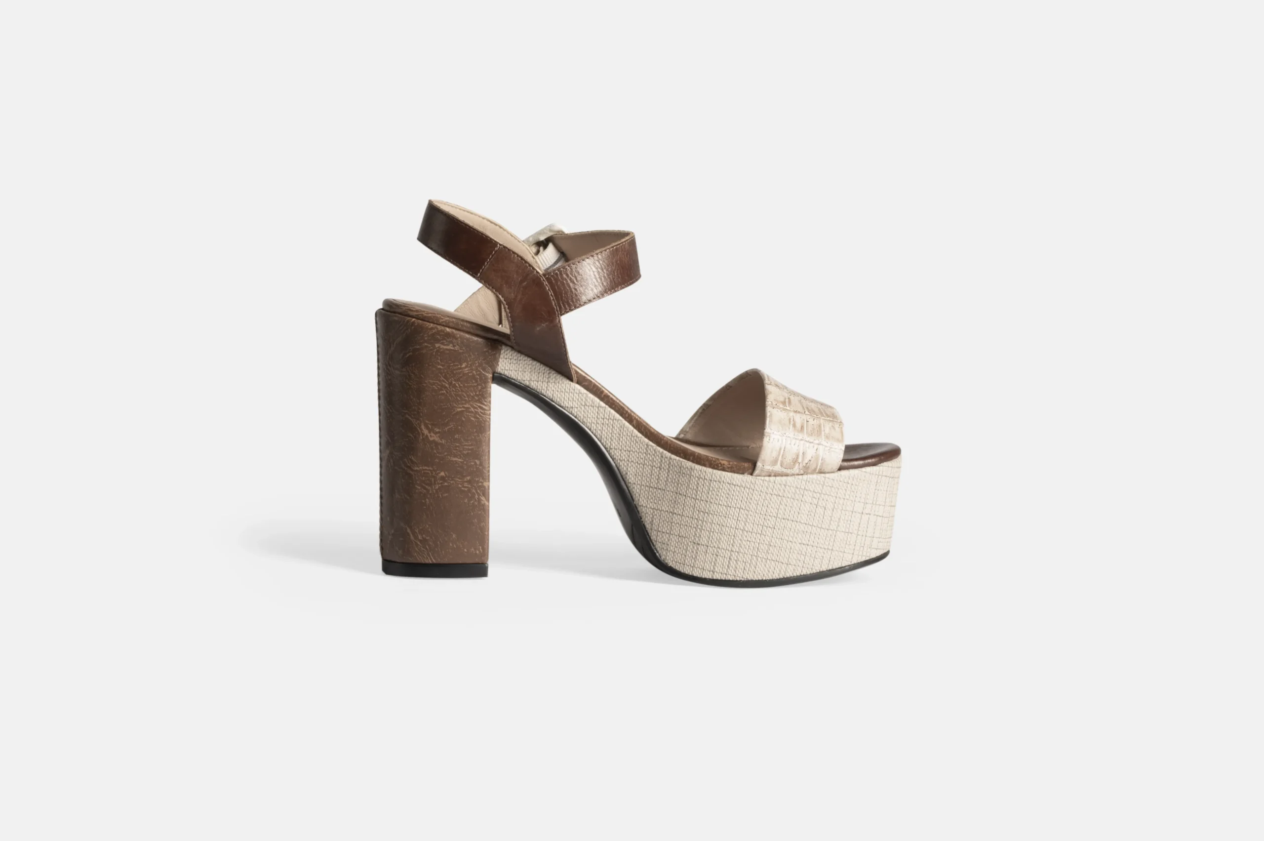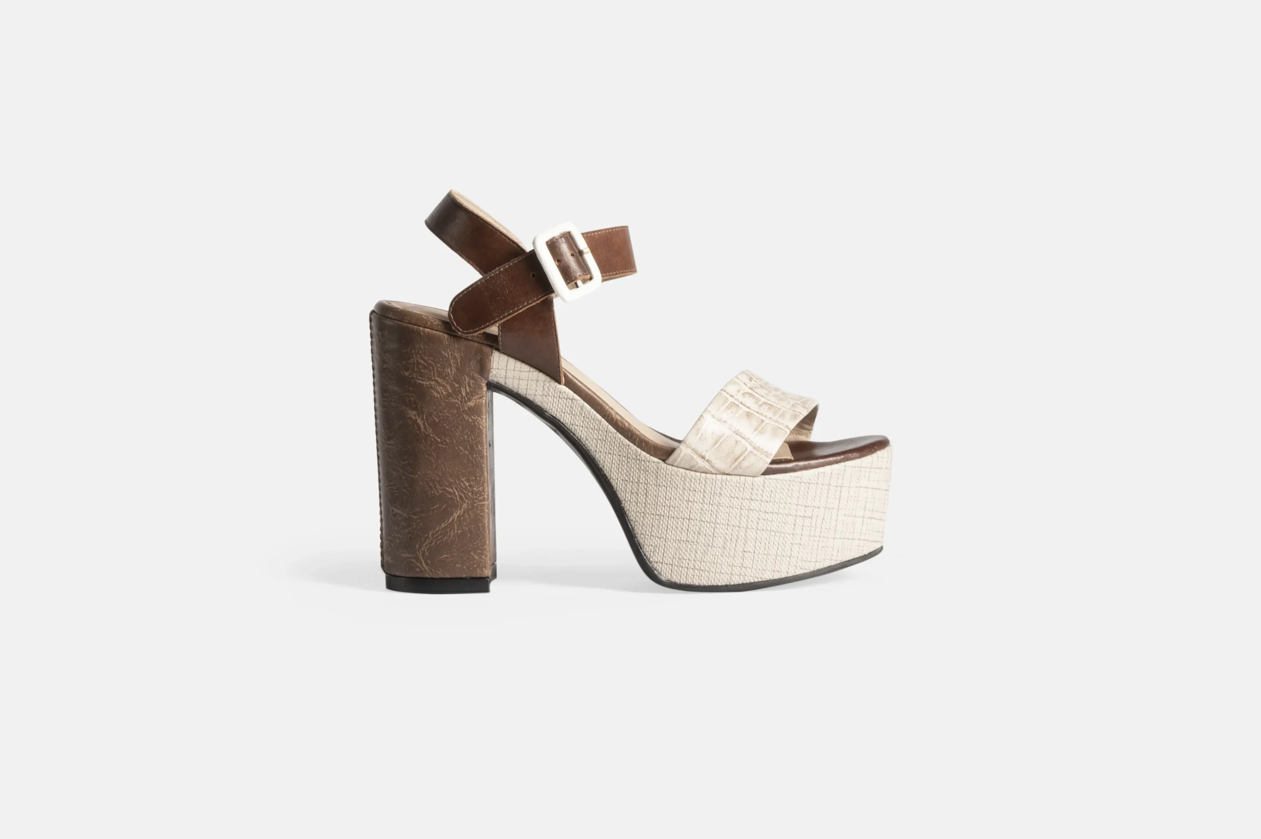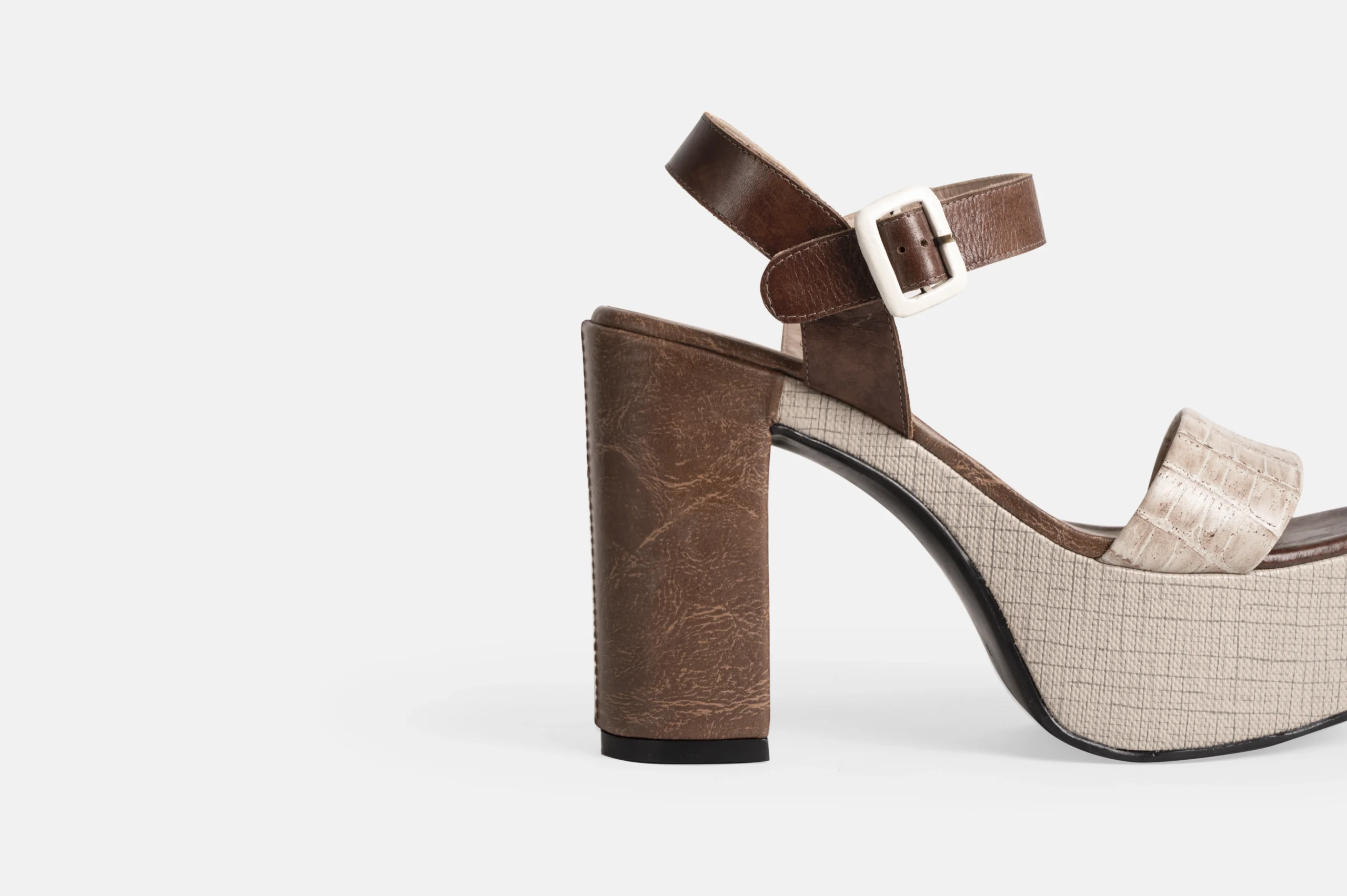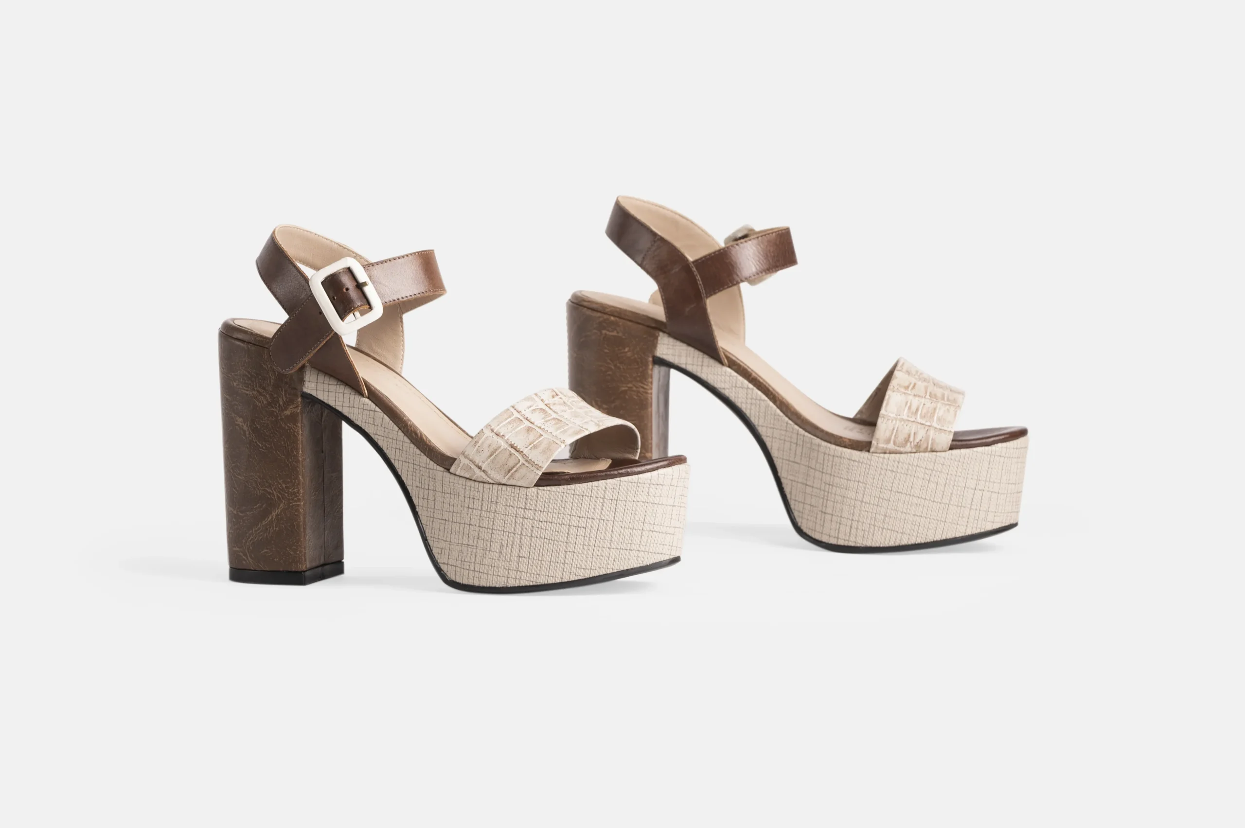 Sandalia de mujer color Croco marfil y cocoa de cuero genuino. Son hechas en nuestra fábrica con la mejor tecnología disponible, garantizando un control de total calidad.