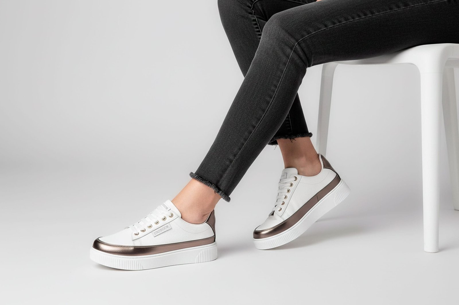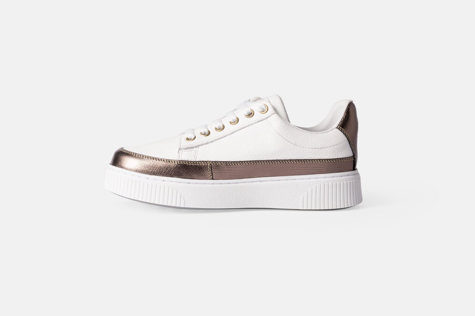 Zapatillas para mujer color blanco y dorado hecho en cuero genuino. Hechas en nuestra fábrica con la mejor tecnología disponible, garantizando un control de total calidad.