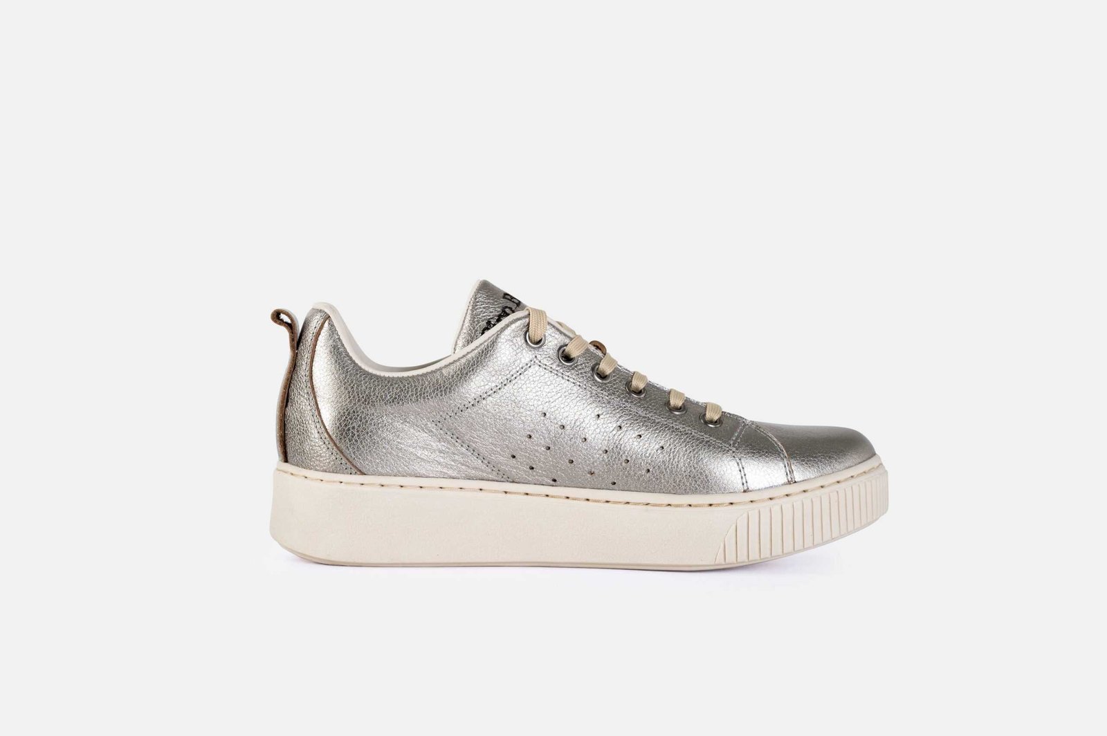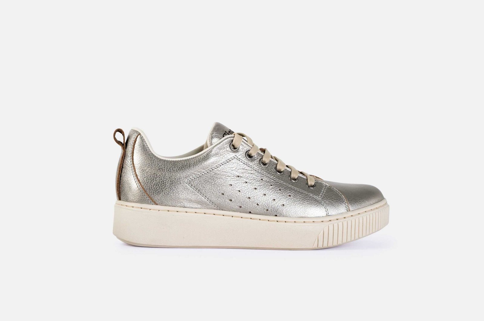 Zapatillas de mujer color plata quemada, hecho en cuero genuino en un tono que contrasta con la planta. Creada en nuestra fábrica con la mejor tecnología disponible, garantizando un control de total calidad. Somos una de las mejores marcas de zapatos en Perú, Gino Bigioni.