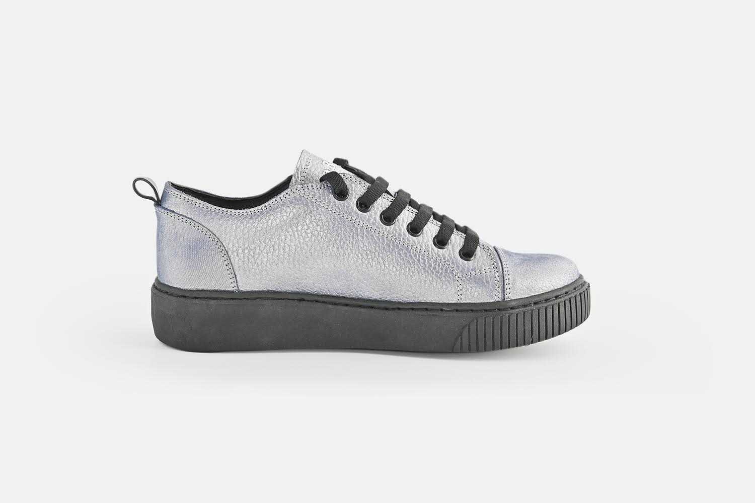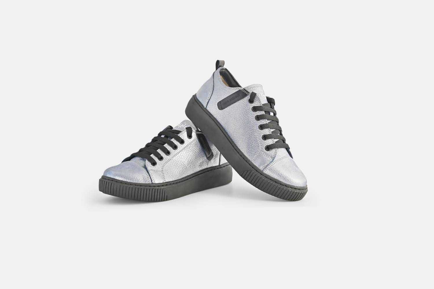 Zapatillas de mujer color plata, hecho en cuero genuino con detalles en tono metalizado. Creada en nuestra fábrica con la mejor tecnología disponible, garantizando un control de total calidad. Somos una de las mejores marcas de zapatos en Perú, Gino Bigioni.